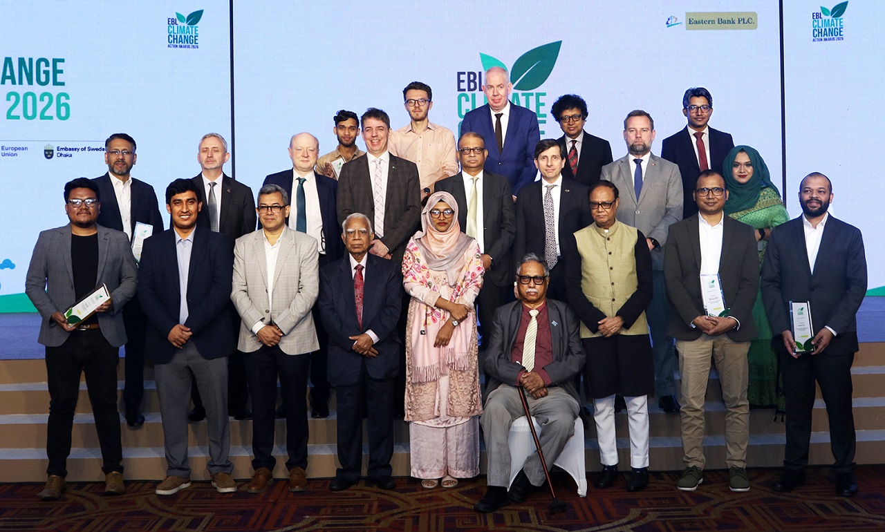 ইস্টার্ন ব্যাংক পিএলসি (ইবিএল) আয়োজিত ইবিএল ক্লাইমেট চেঞ্জ অ্যাকশন অ্যাওয়ার্ডস ২০২৬-এ জলবায়ু পরিবর্তন মোকাবিলায় উদ্ভাবনী, কার্যকর উদ্যোগের জন্য পাঁচটি প্রতিষ্ঠানকে সম্মাননা প্রদান করা হয়েছে। গতকাল সন্ধায় রাজধানীর র্যাডিসন ব্লু ওয়াটার গার্ডেন হোটেলে আয়োজিত অ্যাওয়ার্ডসের দ্বিতীয় সংস্করণে নীতিনির্ধারক, কূটনীতিক, ব্যবসায়ী নেতা ও উন্নয়ন Read more...