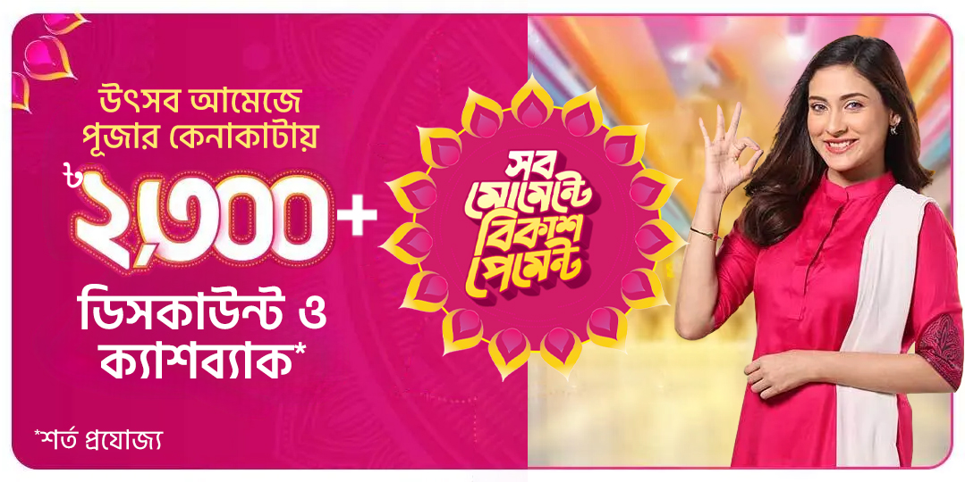 বরাবরের মতো এবারও শারদীয় দুর্গা উৎসবকে সামনে রেখে কেনাকাটাকে আরও সহজ, সাশ্রয়ী ও আনন্দময় করতে বিকাশ নিয়ে এসেছে অনলাইন ও অফলাইন কেনাকাটায় আকর্ষণীয় সব ডিসকাউন্ট ও ক্যাশব্যাক অফার। সুপরিচিত ব্র্যান্ড থেকে শুরু করে বিভিন্ন অনলাইন ও অফলাইন শপে পোশাক, জুতা, ইলেকট্রনিক ডিভাইস ও অ্যাকসেসরিজ, গ্রোসারি, প্রসাধনী পণ্য, মিষ্টান্ন, খাবার অর্ডারসহ নানা Read more...