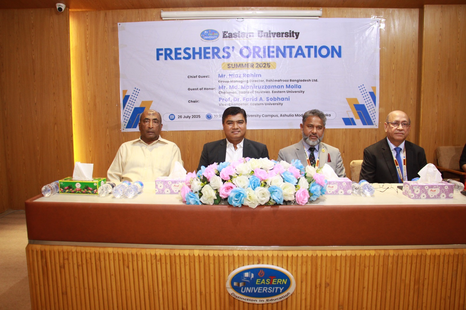 আজ ২৬ জুলাই ২০২৫, শনিবার, ইস্টার্ন ইউনিভার্সিটি প্রাঙ্গণে সামার ২০২৫ শিক্ষার্থীদের নবীনবরণ অনুষ্ঠান অত্যন্ত সফলভাবে সম্পন্ন হয়েছে। নতুন শিক্ষার্থীদের স্বাগত জানানোর লক্ষ্যে আয়োজিত এ অনুষ্ঠানে সভাপতিত্ব করেন বিশ্ববিদ্যালয়ের উপাচার্য প্রফেসর ড. ফরিদ আহমদ সোবহানী।