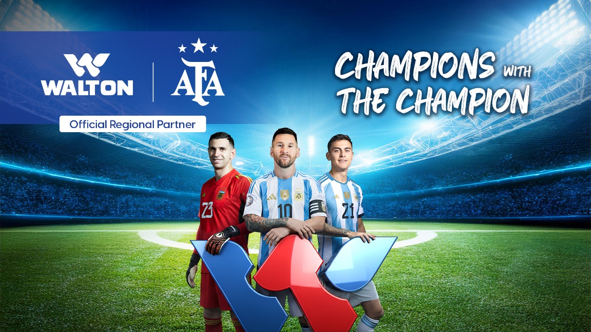 বিশ্বচ্যাম্পিয়ন আর্জেন্টিনা জাতীয় ফুটবল দলের সঙ্গে যুক্ত হলো ইলেকট্রনিক্স ও প্রযুক্তি খাতের শীর্ষ ব্র্যান্ড ওয়ালটন। আর্জেন্টিনা দলের অফিশিয়াল রিজিওনাল স্পন্সর হলো ওয়ালটন। এরফলে আর্জেন্টিনা জাতীয় ফুটবল দলের সব ধরনের ব্র্যান্ডিং স্বত্ত্ব লাভ করলো ওয়ালটন। এখন থেকে ওয়ালটন পণ্যের নানান ধরনের ব্র্যান্ডিং কার্যক্রমে দেখা যাবে মেসি-মার্টিনেজদের, Read more...